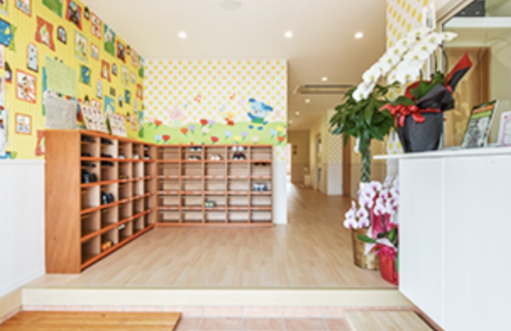 かわいらしくポップな壁紙で、エントラスはとても明るい雰囲気です。「おはようございます」「さようなら」など子どもたちと先生の元気な声が毎日飛び交っています。
