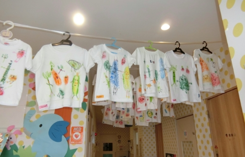 子どもたちが自由な発想でつくった制作物や日々の様子を園内にたくさん掲示しています。保護者のみなさまに園での活動や出来事を知っていただき、先生や子どもたちとたくさんお話ししてほしいと願っています。子どもたちはお母さん、お父さんから褒められることが何よりうれしいのです。
