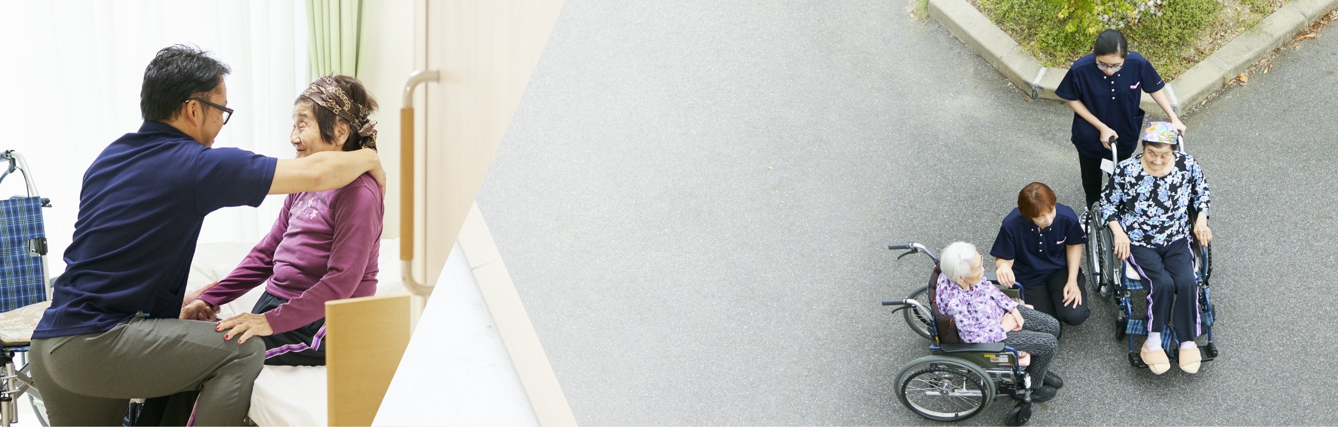 特別養護老人ホームを中心に幅広い介護サービスを提供しています。ご家族も含め、安心してご利用いただけるよう、ひとりひとりの状態やご要望をしっかりとお伺いして、心からの介護に努めます。