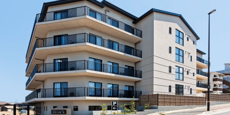 天皇の杜古墳や御陵公園、京都大学桂キャンパスなどが近くにあり、閑静な住宅街に位置する「すないの家 桂」。京都駅からはバスで40分、国道9号線に面しており車でのアクセスも便利です。近くに高い建物がないため窓からの見晴らしがよく、春には公園の桜まで見渡せます。入居者さまに楽しみをもって過ごしていただくために、レクリエーションやイベントはもちろん、日々の食事や会話まで、笑顔を引き出せるような取り組みや工夫に力を入れています。「すないの家 桂」は終身までご利用いただくことができる施設です。京都桂病院をはじめ、近隣に多数ある医療機関と連携しているため緊急時の対応もスムーズです。
